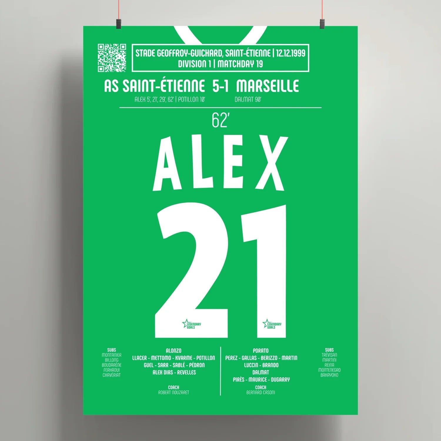 Poster du 4e but d’Alex Dias – ASSE vs OM 1999 - Legendary Goals