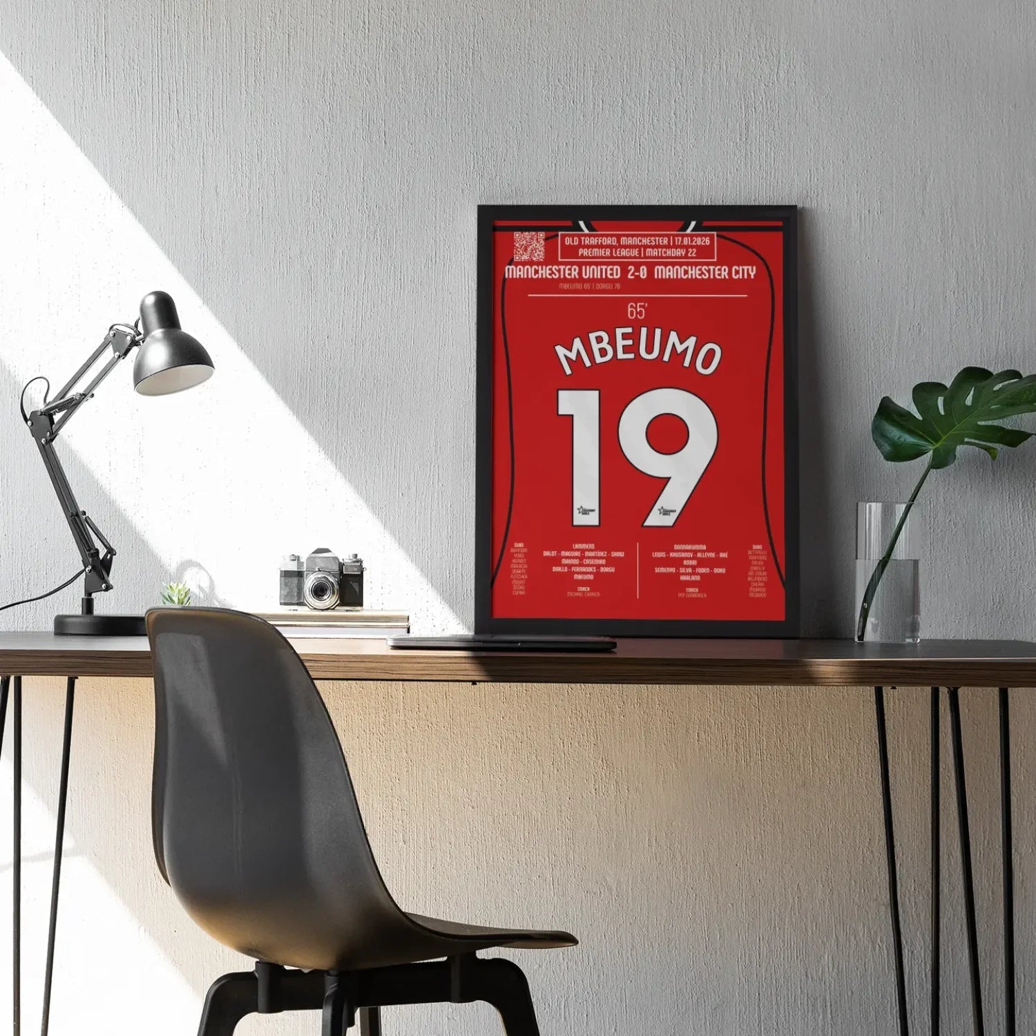 Ajoutez une pièce forte et moderne à votre décoration avec ce poster célébrant un moment clé de la Premier League. Son design minimaliste et premium met en valeur l’intensité de cette réalisation décisive tout en s’intégrant parfaitement à tout style d’intérieur.