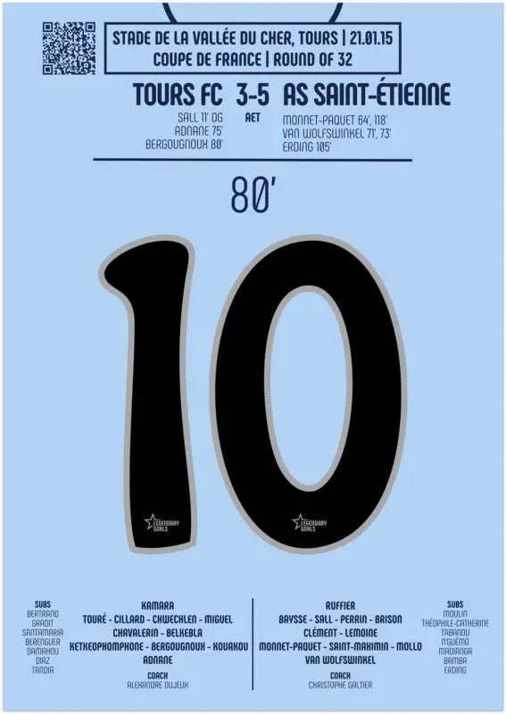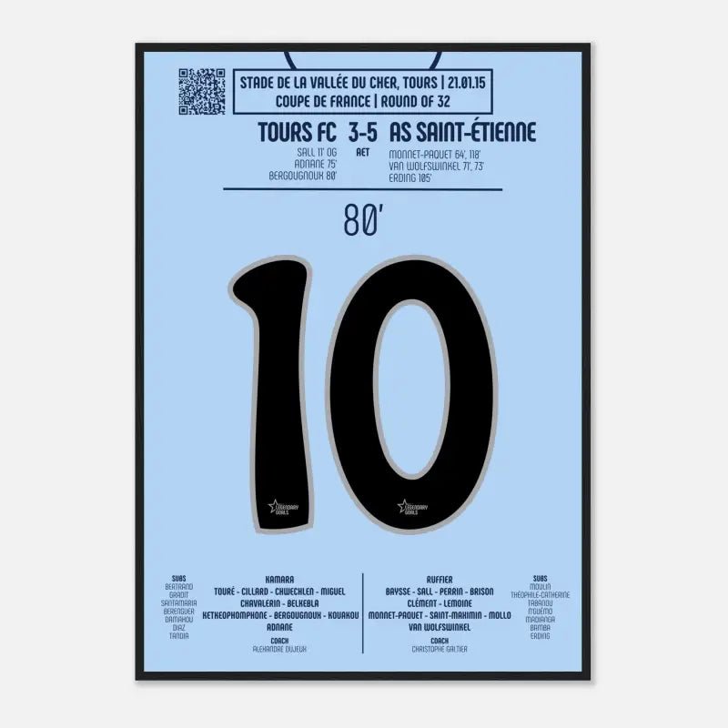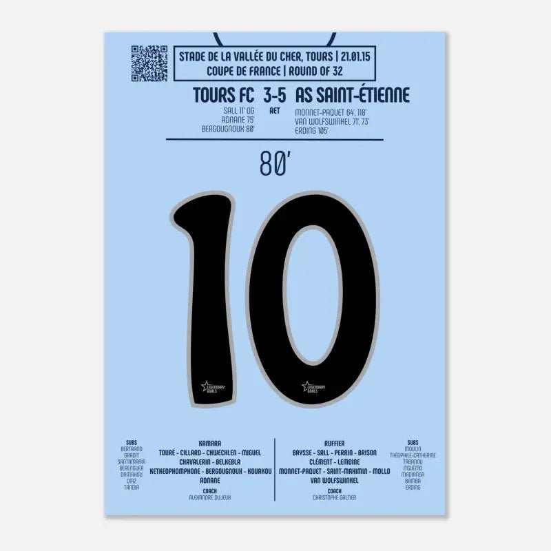Célébrez ce but mémorable de Bryan Bergougnoux avec un poster au design minimaliste et raffiné. Idéal pour tous les passionnés de football, il ajoute une touche d’histoire et d’élégance à n’importe quel espace. Une version encadrée en noir est également disponible pour une présentation encore plus sophistiquée.