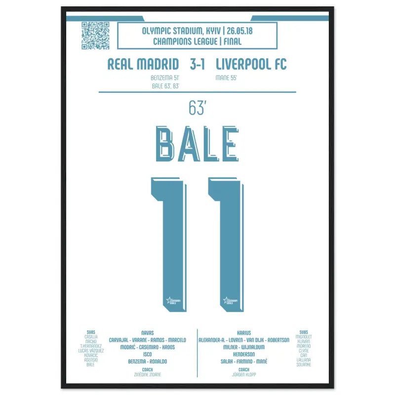 Célébrez l'un des moments les plus emblématiques de Gareth Bale avec ce poster magnifiquement conçu. Doté d'un style minimaliste et raffiné, il complète parfaitement n'importe quel décor. Une version encadrée en noir élégant est également disponible, prête à rehausser vos murs avec sophistication.