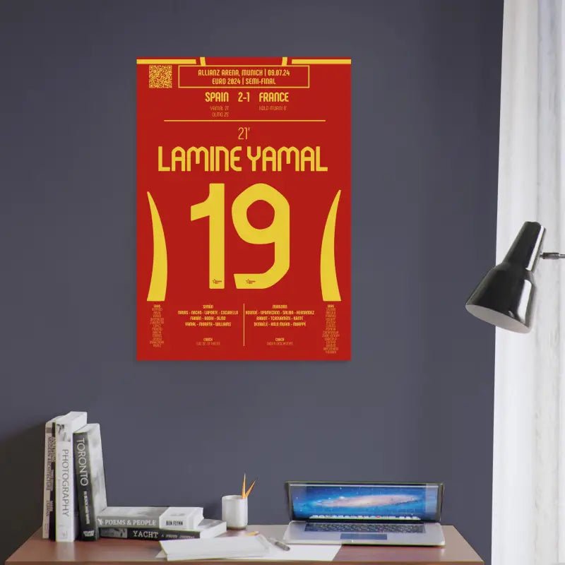 Ce poster est bien plus qu'un simple souvenir : il célèbre l'exploit historique de Lamine Yamal et l'intensité d'une demi-finale mémorable. Offrez-vous ou offrez à un proche une pièce unique rendant hommage à ce jeune talent et à la magie de l'Euro 2024.