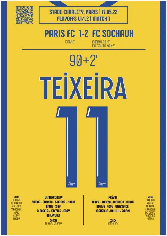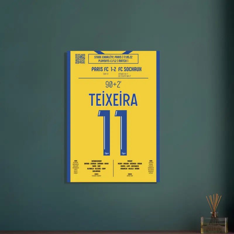 Chaque poster inclut un QR code unique qui vous permet de revoir ce but magique en vidéo. Il suffit de scanner le code avec votre smartphone pour ressentir toute l’intensité du moment.