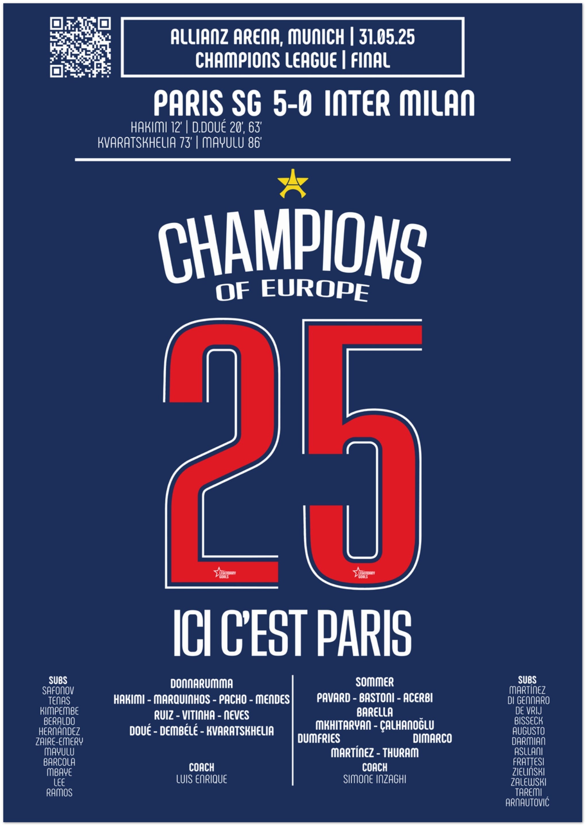 Paris Saint-Germain 2025 : Le Sacre Ultime (V2) - Poster collector de buts légendaires