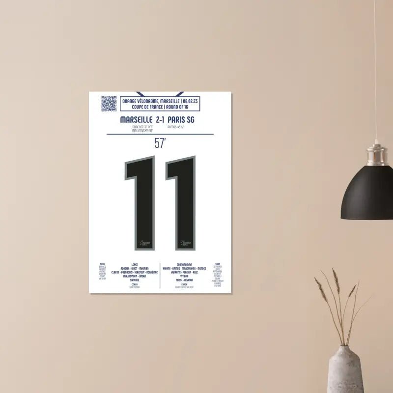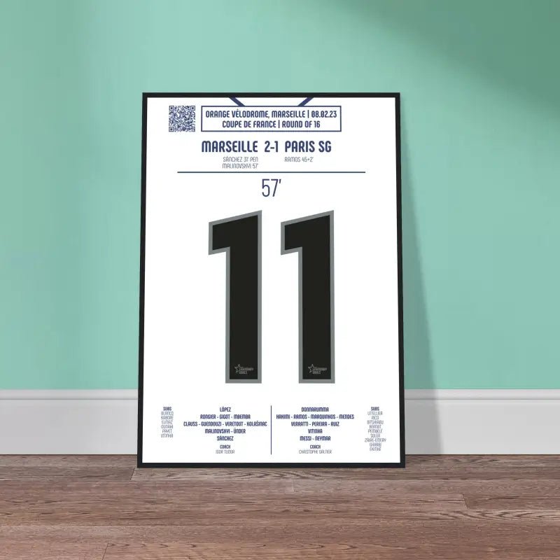 Chaque poster inclut un QR code unique qui vous permet de revoir ce but magique en vidéo. Il suffit de scanner le code avec votre smartphone pour ressentir toute l’intensité du moment.